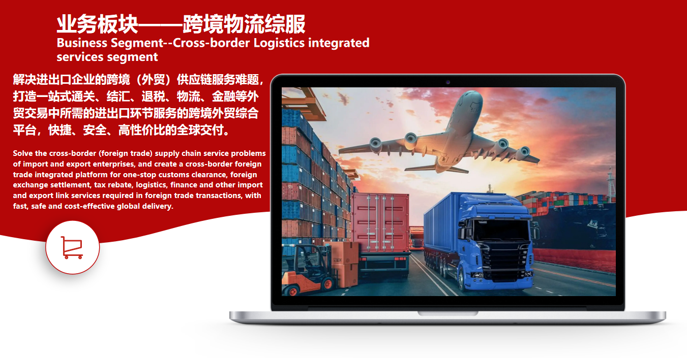 我们打造了一个跨境外贸综合平台,致力于解决进出口企业在跨境(外贸)供应链服务方面的难题。这个平台提供一站式通关、结汇、退税、物流、金融等服务,实现快捷、安全、高性价比的全球交付。