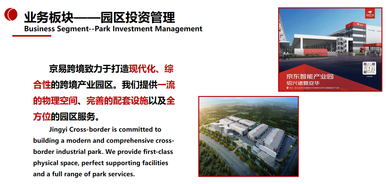 围绕跨境电商企业从研发、设计到销售、服务的全流程需求,打造全场景、全链路的产业集聚平台。在这个过程中,我们涵盖了产业研究、产业规划、产城投资、建设开发、运营管理、服务输出等一系列服务。